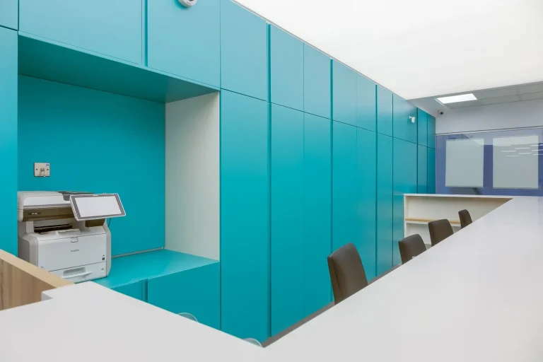 Proiect de amenajare clinică medicală, din mdf vopsit si HIMACS. Dr. Zgkouri, o clinica în Vienna.